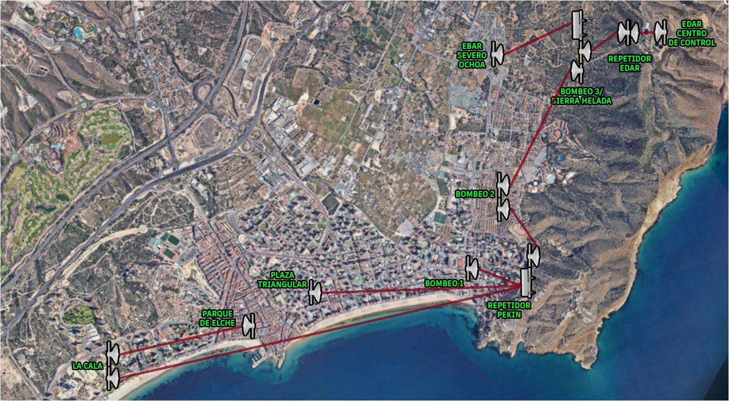 Se trata de una red de comunicaciones aérea para dar cobertura a todas las estaciones de bombeo de la ciudad y conseguir mejorar la prestación de servicios. Para ello, hemos levantado tres torres de 30 metros para colocar las antenas y tener una mejor visión de toda el área de actuación.
